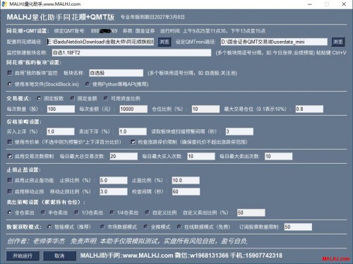 MALHJ量化助手QMT+同花顺专业版设置效果图