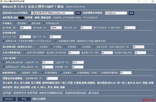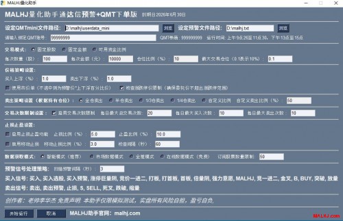 MALHJ量化助手通达信预警+QMT下单专业版
